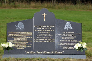 This is his headstone, at Woodlands Cemetery in Scarborough. I would not be sorry if it were defaced and smashed to smithereens although a broken stone will never equal him defacing and breaking countless lives. Defacing a gravestone is a criminal offence of course, but nothing compared to the offences Savile got away with in his lifetime. I also think he should be stripped of his knighthood. I've started the hashtag